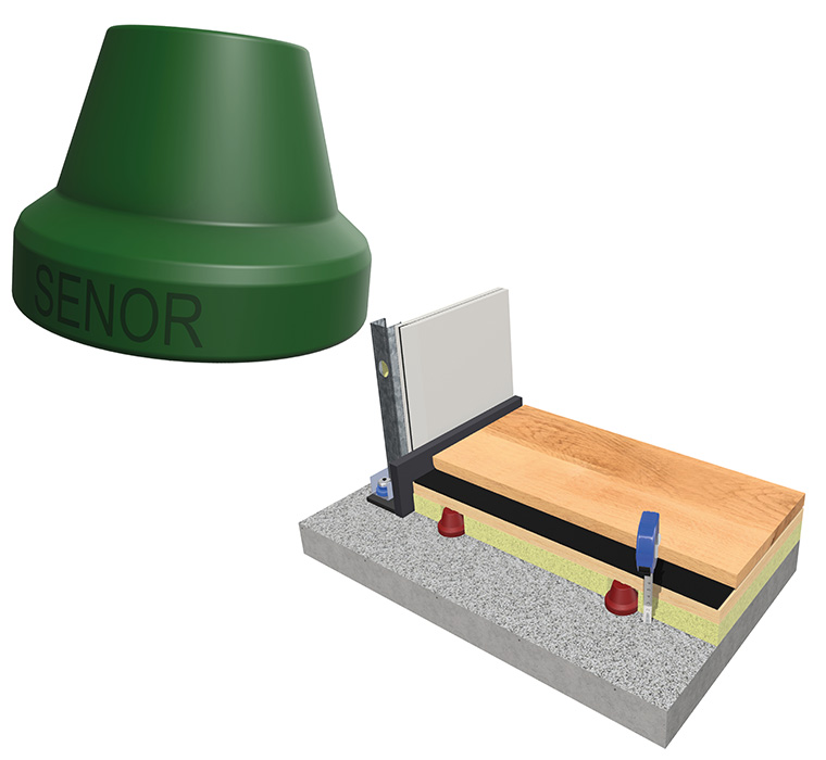 The SE-TSC-30 A includes a PATENTED restraint system (three rings in its base) acting as a suction pad which limits the movement and make sure the grip to the floor. It is designed in the shape of trapezium improving the elasticity of the system and proving an excellent performance in the soundproofing field. .